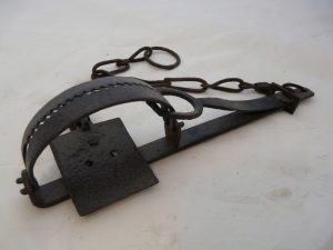4.5″ toothed Round Gin Trap with Sliding Safety and Riveted Spring Post