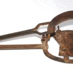 18 inches long with 6 1/4 inch jaws, treadle type plate mechanism. It has got sharp teeth set into the underside of each jaw. No maker’s marks I can see.